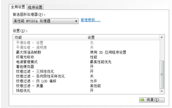 step2:全局設(shè)置NVIDIA處理器,PS:其實(shí)自動(dòng)選擇也是可以,但是有的程序會(huì)自動(dòng)選擇集顯,以下設(shè)置純屬個(gè)人意見(jiàn),要是不想的話,用NVIDIA預(yù)設(shè)的也是可以的