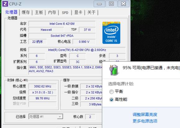 打開(kāi)CPU-Z軟件,可以看到,高性能模式就鎖頻在3.1G, 3.2G浮動(dòng),單核最高3.3G