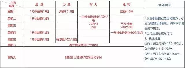 可以看出,小學基本上與蕭山的學校平時給學生布置的如跳繩、仰臥起坐之類的差不多。應該不會造成會給孩子增加負擔的困擾。